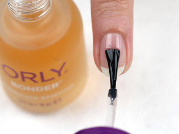 - После обезжиривания выполняют обработку бондом, а затем праймером, чтобы сцепка материала и натурального ногтя была качественной.