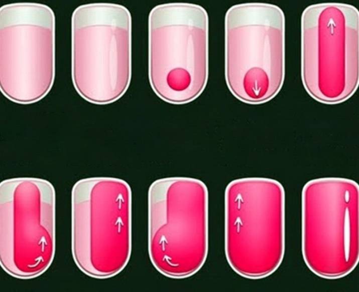 Прежде чем приступить к самому процессу нанесения лака следует убиться, что у девушки есть 40 минут свободного времени, исключить или минимизировать отвлекающие факторы, а также продумать дизайн. Кроме этого, необходимо проверить форму кисти, она должна быть не узкой и плотной. Инструкция по созданию идеального маникюра: