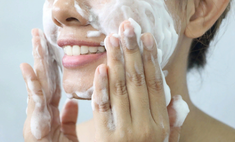 - Кожа тщательно подготавливается. Из пор нужно убрать все загрязнения. Для этого рекомендуется сначала умыться пенкой. После или проскрабироваться, или промыть личико мицеллярной водой;