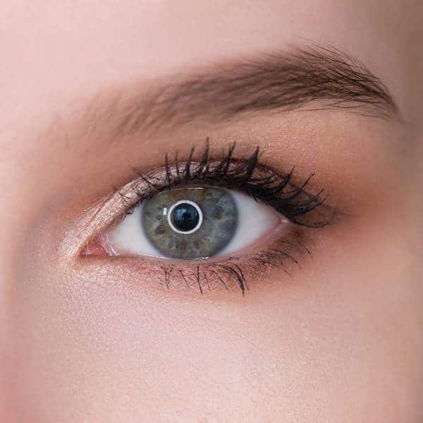 При нанесении теней на большие глаза используйте два оттенка одновременно. Переход цвета ощущается на подвижных веках — анатомия большого глаза позволяет это сделать.