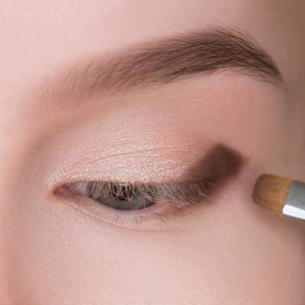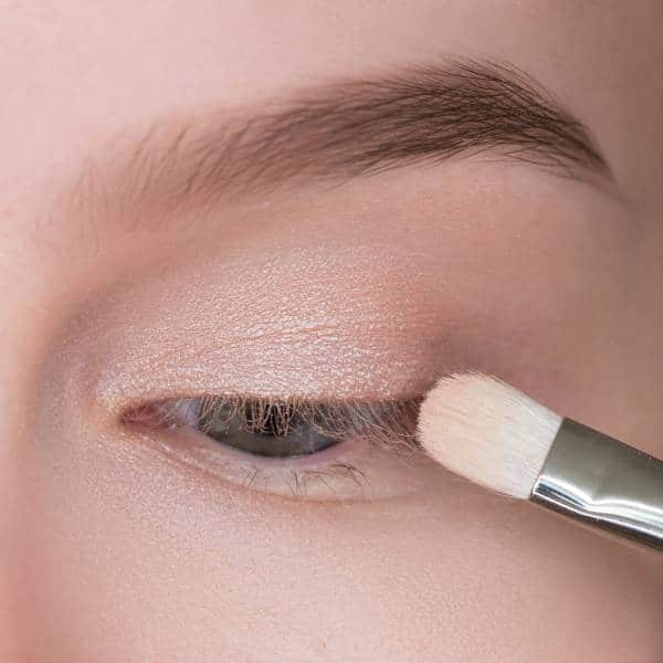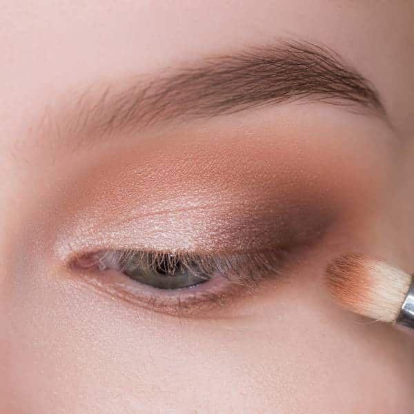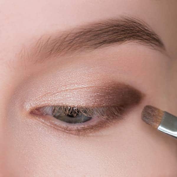 Подвижные веки окрашиваются более светлыми оттенками. Более темные оттенки наносятся на складку бриджей и стираются на бровях. Визуально это делает глаза более глубокими.