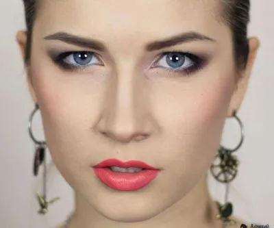 Такие глаза кажутся погруженными в воду, а верхнее подвижное веко едва заметно. При создании «подъемного» макияжа глаз на переднем плане нельзя добавлять темные тени на веки.