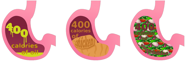 Это имеет большое значение, когда калории не контролируются. Именно поэтому все диеты основаны на простом факте: нужно есть меньше продуктов, которых легко съесть много и/или есть больше тех, которых трудно съесть много. Вы автоматом снижаете дневную калорийность и заставляете организм худеть.