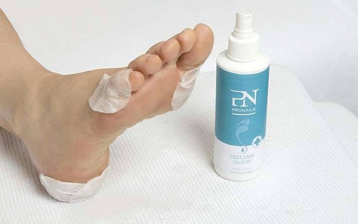 Нанесите средство-ремувер на стопы. Нога должна быть правильно подготовлена для проведения процедуры.