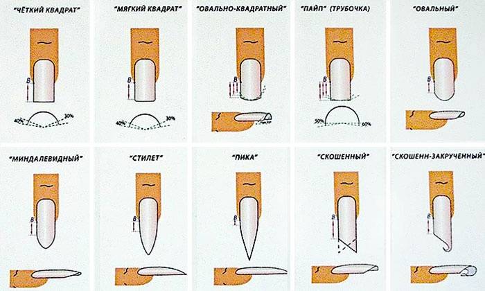 Чтобы разобраться с возможностью исправления формы ногтей в домашних условиях, следует определиться с тем, какие именно формы ногтей существуют. Специалисты выделяют такие основные формы.
