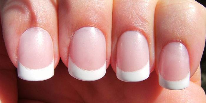 Еще одним выбором для ломких ногтей является форма мягкий квадрат, которая представляет собой прямоугольник со смягченными закругленными краями. Благодаря округлостями ноготки не будут цепляться за одежду. Идеальным маникюром для такой формы считается французский классический. Мягкий квадрат подходит всем женщинам, кроме обладательниц коротких пальцев.