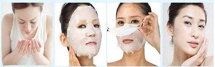 Перед нанесением маски на лицо его тщательно очищают при помощи тоника. Дальнейшие действия зависят от типа маски. Альгинатные смешивают с водой и быстро наносят на лицо. При использовании тканевых накладывают маску, равномерно распределяя ее по лицу согласно контуру. Если маска с воротником, накладывают его на шею. Если его нет, наносят на область шеи остатки сыворотки из пакета.