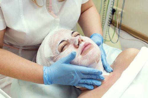 - Нанесение на сухую очищенную кожу геля-активатора, а затем наложение маски на 30 минут. Для домашних процедур используют тканевые маски, в салоне специалисты применяют многоразовую маску-аппликацию, которую периодически прижимают к лицу пациента мягкими движениями;
