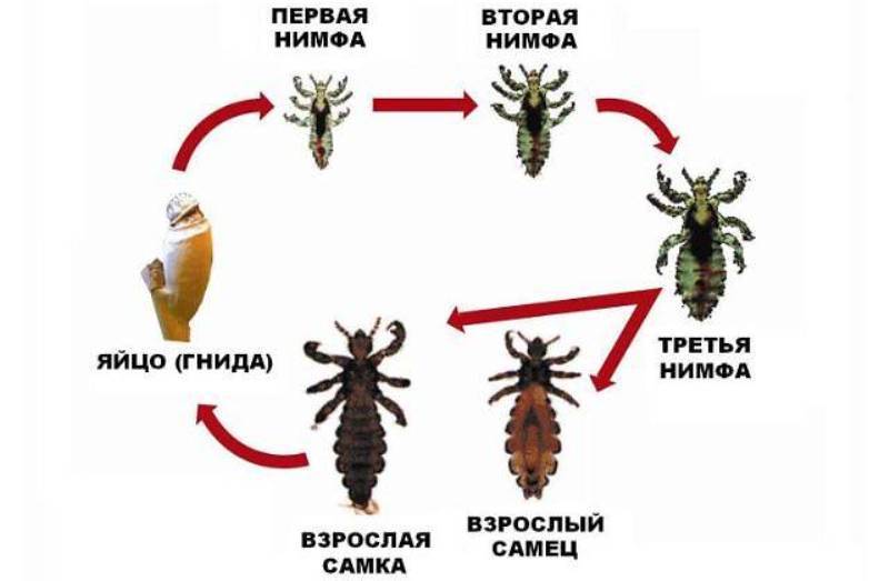 После спаривания с самцом у самки осеменяются яйцеклетки. Далее происходит процесс развития вши. Через пару часов с момента оплодотворения начинается первая откладка гнид.