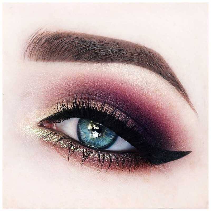 - Карие глаза. Этот цвет глаз сочетается с большим количеством оттенков косметики. Подойдёт кареглазым девушкам и классический черный, и серый, и насыщенный коричневый. Уместно будет смотреться оливковый, фиолетовый, золотистый, зеленоватый. Если глаза светлые, чайного оттенка, то стоит остановить свой выбор на теплых оттенках, таких как золотистый или медовый. Обладательницам темно-карих очей к лицу, напротив, холодные тона: фиолетовый, серый, синий.