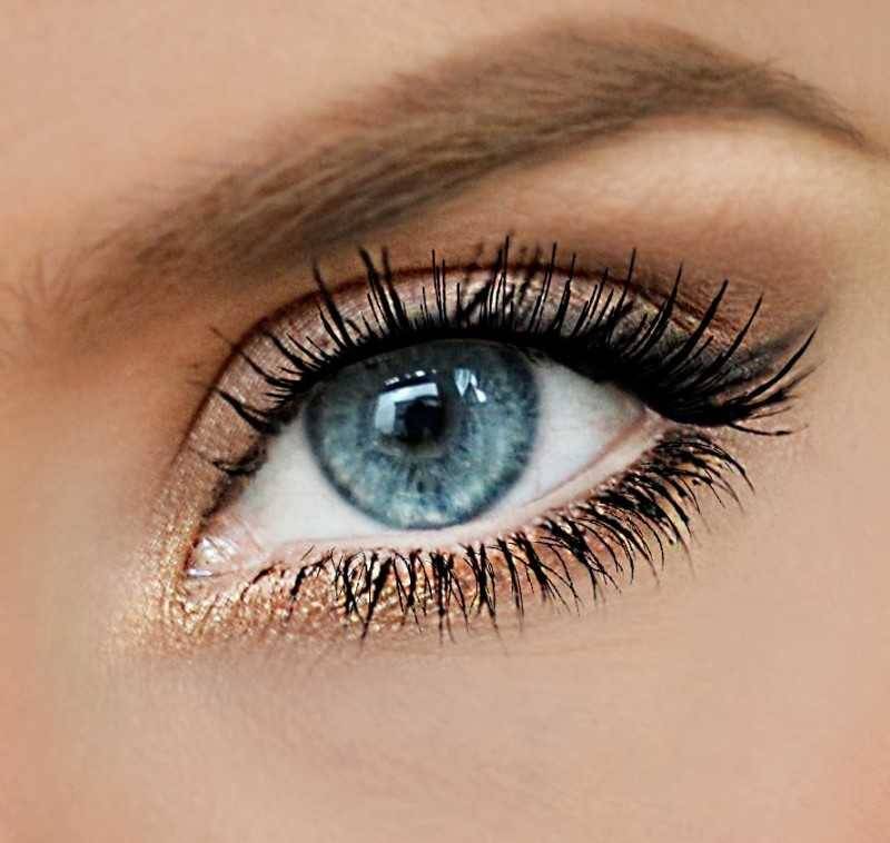 Если ваша кожа загорелая и имеет бронзовый оттенок (так часто бывает после лета), то приобретите тени коричне6вых и золотистых оттенков. Они подчеркнут голубые глаза, сделают из ярче, а взгляд — глубже.