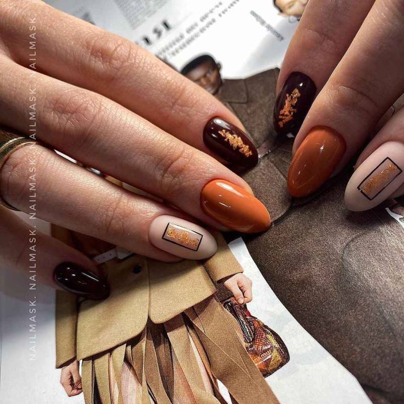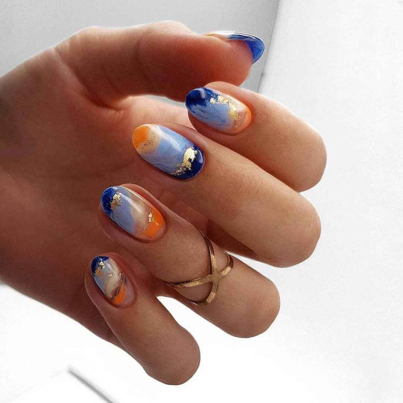 Для каждого пальца – своя стихия. Активируем их с помощью разных оттенков. Яркие сбалансированы нейтральными. Можно сделать такой маникюр только на одной руке, а на второй ногти накрасить нюдовым или пастельным лаком.