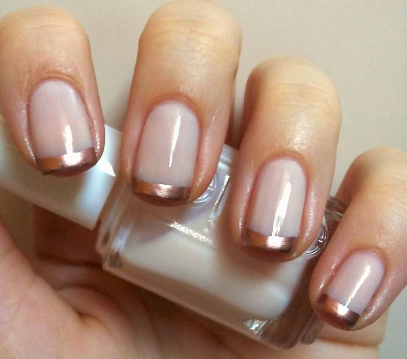 Литье может стать частью дизайна френч и его модифицированных версий – лунного, стилизованного, цветного французского маникюра. Если цвет свободного края ногтя может быть любым, почему бы ему не быть металлическим?