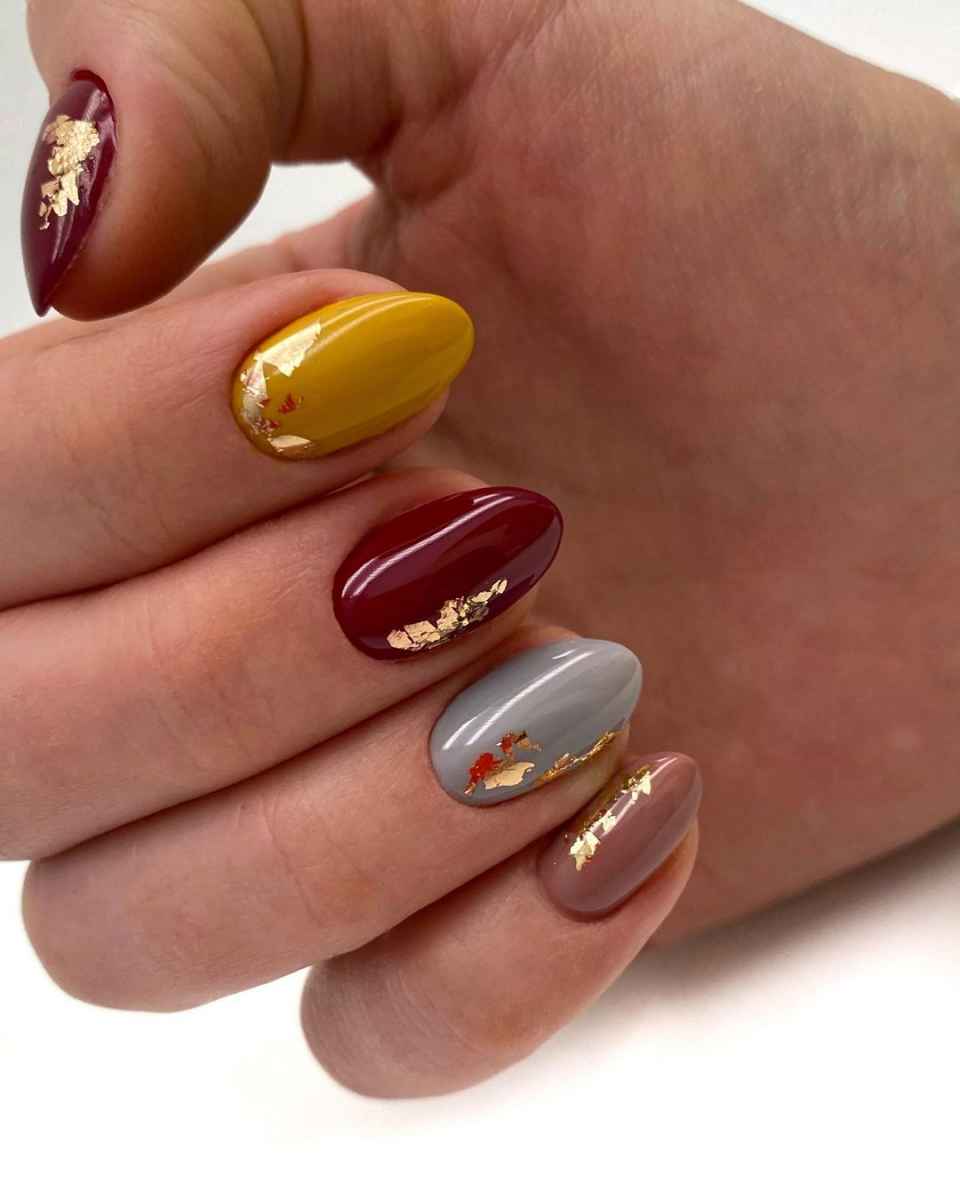 Цветная поталь на ногтях: розовая, красная, бордовая, черная, синяя