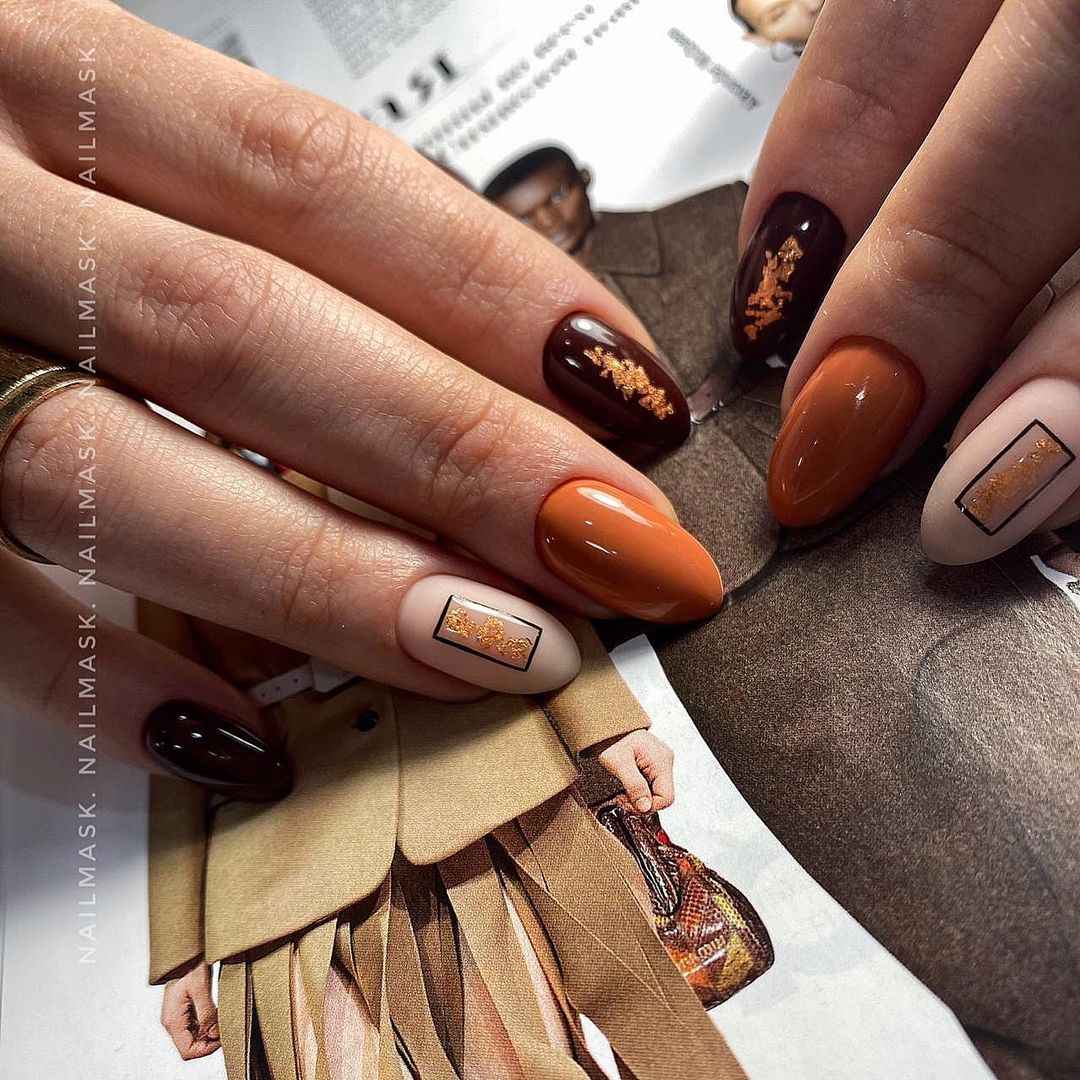 Для каждого пальца – своя стихия. Активируем их с помощью разных оттенков. Яркие сбалансированы нейтральными. Можно сделать такой маникюр только на одной руке, а на второй ногти накрасить нюдовым или пастельным лаком.