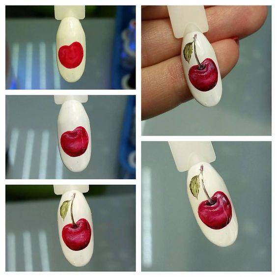 Рисунок с вишней на ногтях –
