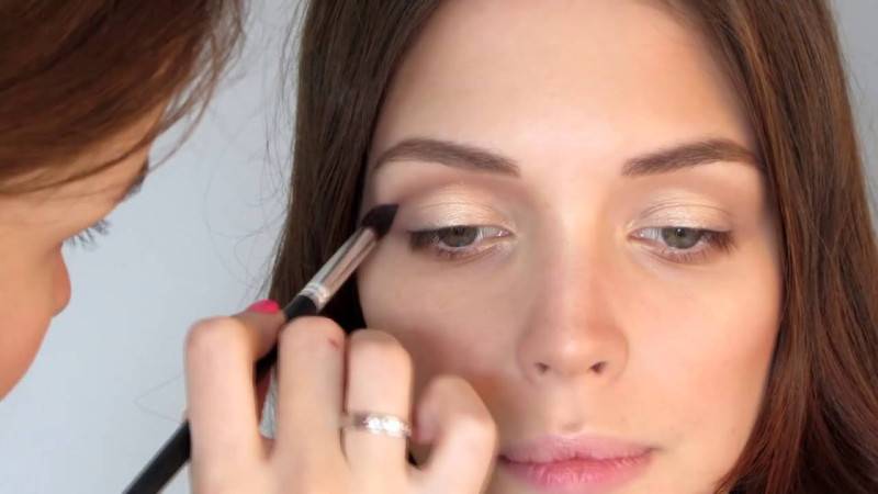 Во-вторых, при выполнении нейтрального мейк-ап в салоне допустимо использовать тени для глаз. Только цвета теней должны быть естественными: персиковыми коричневыми, бежевыми.