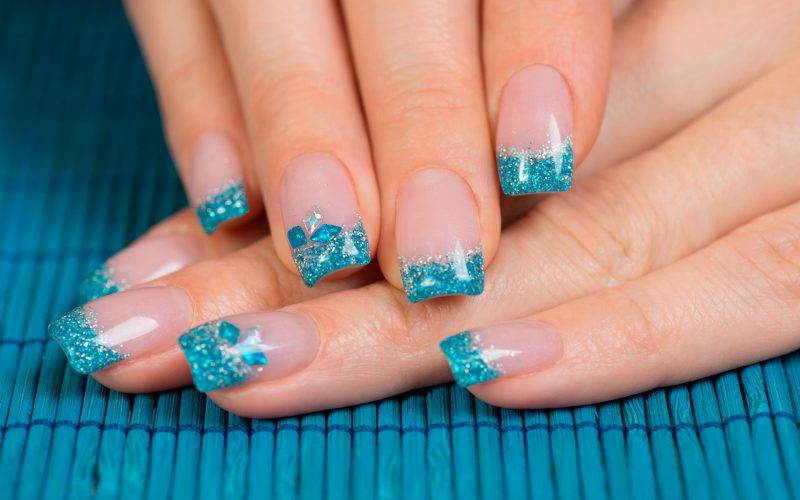 Основа может быть любого цвета — от прозрачного до черного или белого. Блестки же могут закрепляться строго на определенной линии или растягиваться до самой кутикулы.