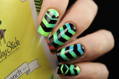 | твист | Кончик ногтя раскрашивается в различные оттенки. Это могут быть геометрические полоски или разноцветные волны. |