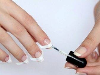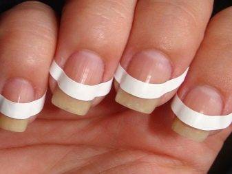 Полоски для французского маникюра можно изготовить и своими руками. Чаще всего для этого используется скотч. Подходит как прозрачный канцелярский, так и бумажный малярный скотч. Гораздо хуже результат можно получить при использовании двустороннего скотча, так как он чрезмерно липкий и оставляет следы клея на ногтевой пластине.