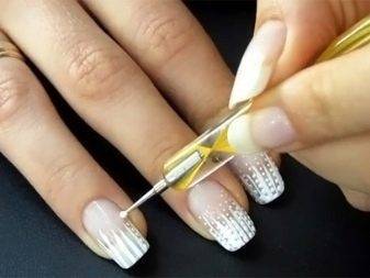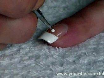 Наборы из палочек с разными насадками позволяют создать один из самых популярных на сегодняшний день оформлений френча. На концах инструментов расположены металлические шарики, которые макают в гель-лак, а затем ставят точки на ногтевой пластине в нужных местах. Работать с таким инструментом легко, но хотя бы без минимальной тренировки сделать красивую улыбку не получится. Помимо того, что нужно четко ставить точки по выбранной форме, которая должна быть идеально одинаковой на других ногтях френча, нужно делать точки разного размера.