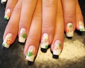 | Френч с рисунком | Поверх классического французского маникюра или любого другого вида выполняется рисунок. Отличный вариант для обладательниц искусственных и длинных ногтей. |