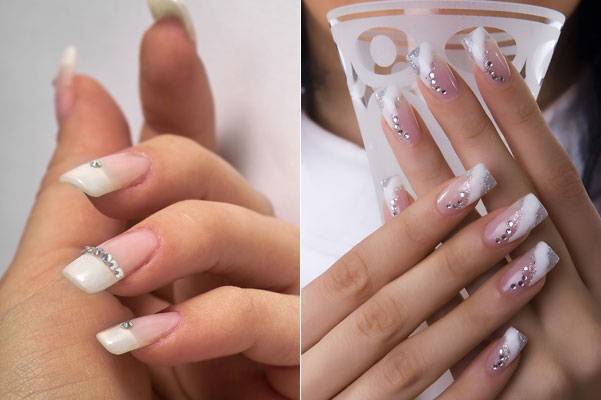 - Фан-френч. Данный маникюр украшается стразами, камушками, блестками.