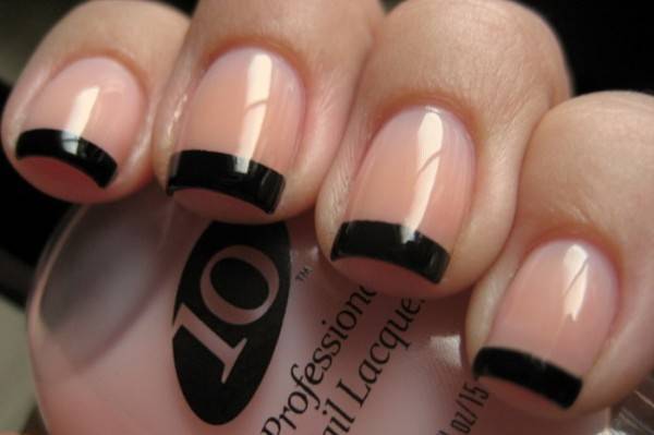 Черный френч представляет собой основу естественных пастельных оттенков, «улыбка» которого сделана черным цветом. Особенно красиво этот вид френча смотрится с различными декорами и рисунками.