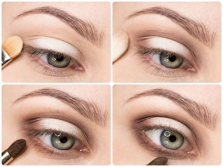 - Растушевать по верхнему веку светлые тени: белые, кремовые, бежевые.