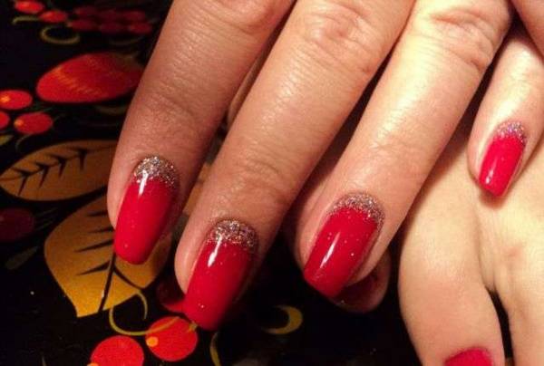 Дополнительно украсить лунный маникюр и придать ему оригинальности помогут стразы или камушки, которые приклеиваются по внешнему контуру полумесяца. И запомните: не обязательно декорировать все ноготки, можно выделить только один ноготь – средний или безымянный. Декоративный глиттер различных оттенков прекрасно дополнит любой маникюр и подарит ногтям необычайный блеск, заставив ваши ноготки переливаться всеми цветами радуги.
