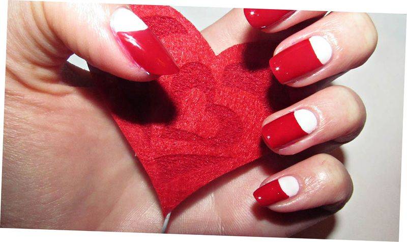 Часто используемый дизайн, в котором объединены французский и лунный маникюр является одним из главных трендов. Основной нюанс его выполнения, оба полумесяца должны смотреть в одну и ту же сторону. Хотя изгиб самой лунки может быть любым.