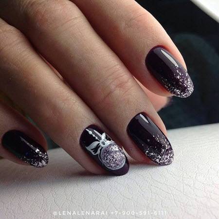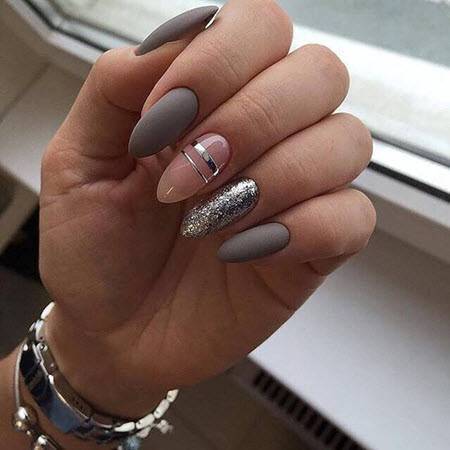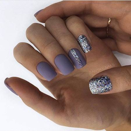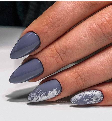 Спокойные серые оттенки будут отличной идеей для маникюра на Новый год 2021, этот цвет считается одним из самых универсальных в цветовой палитре. Сочетание серого лака и серебристых блесток или фольги будет основным трендом 2021 года.