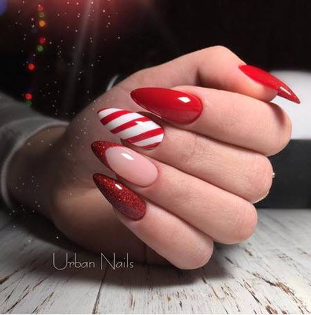 Красный лак — идеальный вариант для новогоднего маникюра 2021, насыщенный глубокий красный подойдет практически к любому наряду. Красный цвет хорошо сочетается с золотом и белым, а это главные цвета новогоднего маникюра. Самые топовые идеи красного новогоднего маникюра смотрите на фото: