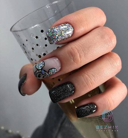 Наклейки. Почему бы юной особе не сделать 4 ногтя в стиле лунного маникюра, а на одном закрепить изображение Микки Мауса?