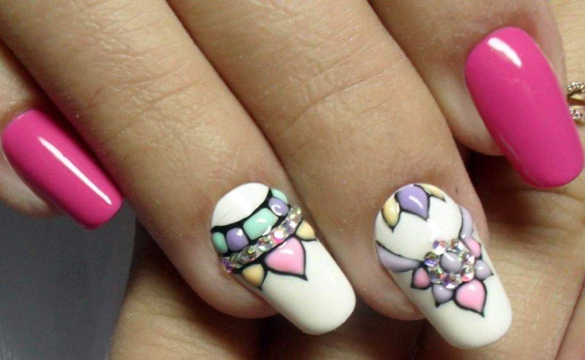 Узоры и геометрия. Так называемый геометрический маникюр, состоящий из квадратов и прямоугольников разного цвета и длины, придаст девушке оригинальности и стильности.