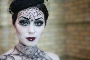 Оригинальный макияж на самый страшный день в году можно выполнить самостоятельно, пользуясь косметическими средствами или же аква гримом. Ниже приведены варианты, которые сделают девушку звездой любой вечеринки.