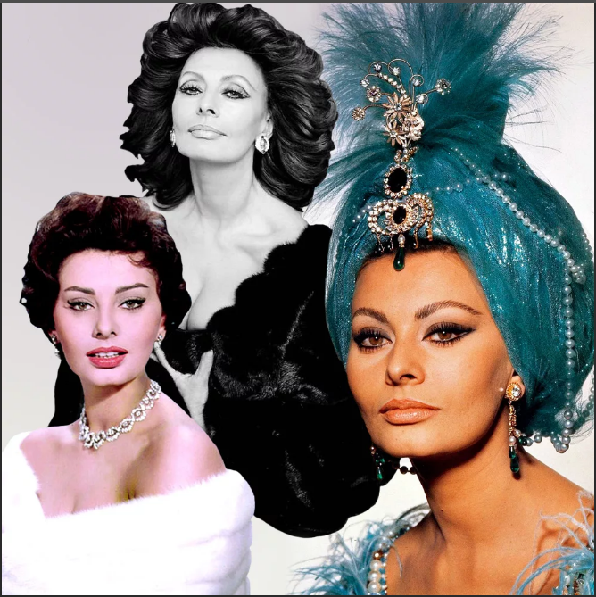 Для меня поиск фотографий Софи Лорен оказался сплошным удовольствием, я могу сравнить это действо с поеданием слегка подтаявших разноцветных шариков мороженного в летний зной. Не спеша и смакуя, я нашла около 300 кадров с этой роскошной итальянкой, но потом я все-таки села и, основательно все отсортировав, оставила лишь половину. Я любитель поискать фотографии красивых актрис, но написание статьи о Софи Лорен я все откладывала на потом! Это же как десерт! Это такое наслаждение, ощущение этого радостного момента хотелось оттянуть как можно дальше, ведь его уже будет не повторить! Красивых женщин в мире кино и эстрады очень много, но такая роскошная в своей нестандартности, как Софи Лорен, существует лишь одна. В чем же уникальность этой любимицы миллионов, чем она всех привлекла и навечно очаровала? Вы только всмотритесь в черты лица этой дивы, они неидеальны, в частности в самом начале карьеры ее муж, который являлся по совместительству и продюсером настаивал на том, чтобы Софи Лорен укоротила кончик своего носа, но начинающая актриса наотрез отказалась править свое лицо, и, как оказалось, правильна сделала, ведь в каждом ее маленьком несовершенстве есть изюминка! Энергетика Софи Лорен просто сумасшедшая, как она крутит и виляет бедрами, как царственно носит свою грудь, как улыбается и смеется! Я рассматриваю все эти фотографии и восхищаюсь ими. На каждом кадре Софи Лорен разная. Вот, к примеру, ее легендарные черные стрелки, наверняка, насмотревшись на них, миллионы женщин порывались нарисовать себе такие же! А какие брови себе создавала Софи Лорен! У итальянки, по идее, должны были бы быть свои черные, густые брови, но Софи Лорен такими не обладала и поэтому рисовала разные, и в зависимости от того, что она намалевала на своем лице, получались всевозможные, но всегда обворожительные образы. А какие у Софи Лорен прически! То она начешет себе пышный хаер, то сделает высокую бабетту, то спрячет волосы под тюрбан или восточный платок, то украсит себя затейливой изящной шляпкой, даже с полотенцем на голове Софи Лорен выглядит сверх обворожительно! Еще один секрет красоты Софи Лорен – это ресницы, актриса их очень тщательно прокрашивает, а также частенько приклеивает накладные. И еще один момент! Небритые подмышки Софи Лорен! Сложно такое не заметить! Наверняка в 50-е, 60-е и 70-е года прошлого столетия, эпилировать интимные зоны было немодно, возможно, что кустиками в подмышечных впадинах и ароматами, раздающимися оттуда, дамы привлекали самых темпераментных кавалеров.