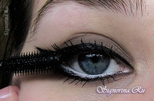 Для ресниц необходимо использовать черную удлиняющую тушь. Для придания ресницам объема можно применить специальную базу
