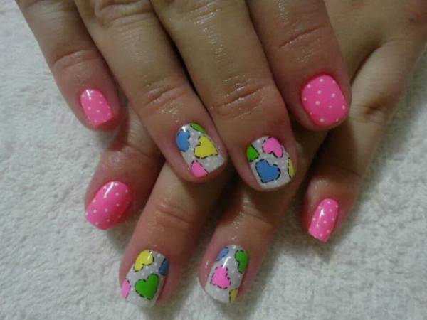 – атрибут детства – нарисовать очень просто. Можно украсить ими все пластинки или только безымянный палец.