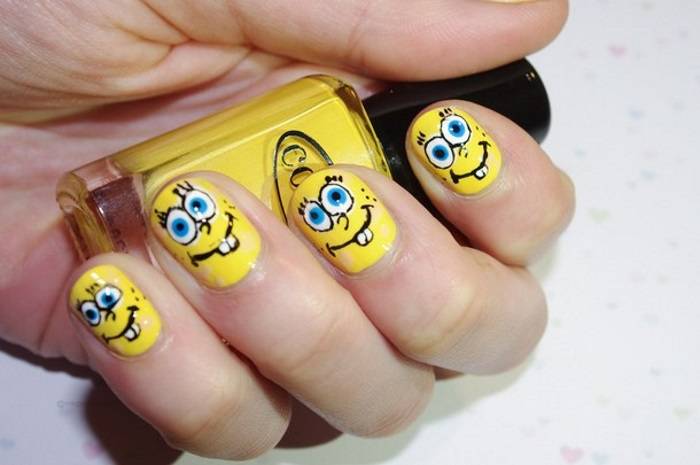 Если включить фантазию, можно каждый ноготь оформить в виде любимых друзей Спанч Боба.