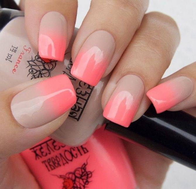 Если выполнять омбре гелями-лаками, то существенных отличий от покрытия обычными лаками не будет, за исключением необходимости полимеризации каждого слоя.