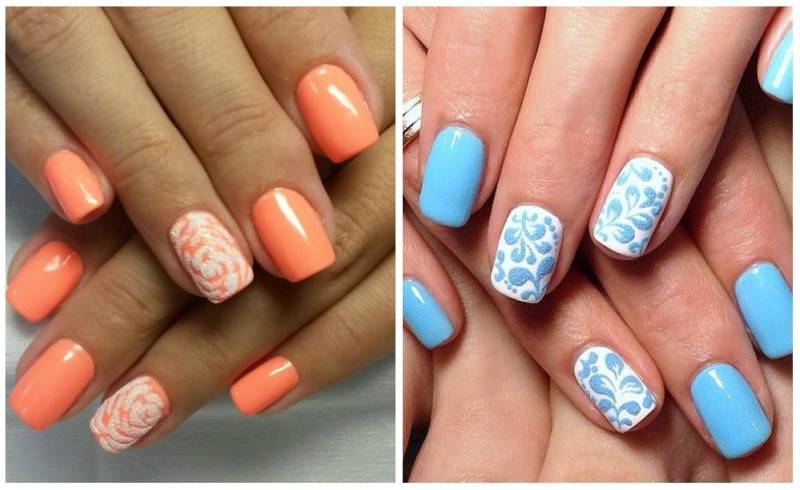 В самом начале необходимо продумать дизайн. Какой создать рисунок, на ногти каких пальцев его нанести, а какие сделать однотонными. Определившись, можно приступать к этапам выполнения. Последовательность действий выглядит так: