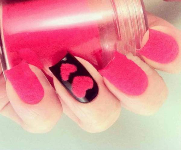 Еще одно важное преимущество бархатного маникюра состоит в том, что он получается довольно объемным и фактурным. Кроме того, такое покрытие держится не одну неделю