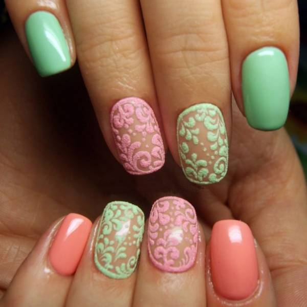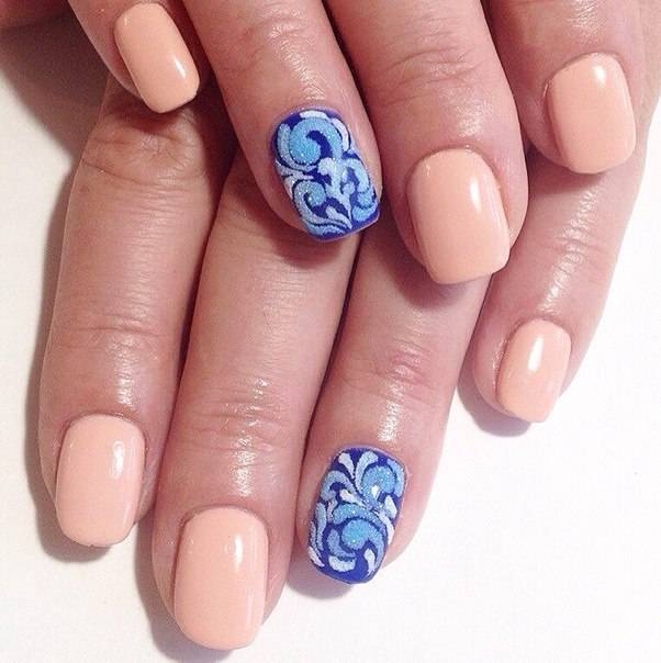 В самом начале необходимо продумать дизайн. Какой создать рисунок, на ногти каких пальцев его нанести, а какие сделать однотонными. Определившись, можно приступать к этапам выполнения. Последовательность действий выглядит так: