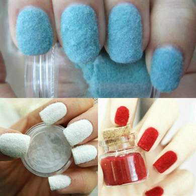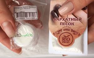Во-вторых, если бархатный песок закончился или его нет в достаточном количестве, то на вопрос, чем заменить его, мастера дают довольно простой ответ: акриловой пудрой крупного помола или же пудрой, используемой в занятиях скрапбукингом или эмбоссингом. Однако лучше заранее проверить на искусственном ногте конечный результат с выбранным заменителем.