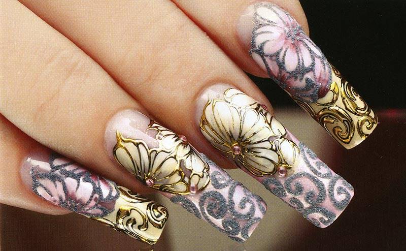 Пошаговая инструкция выполнения декора ногтей первым методом.