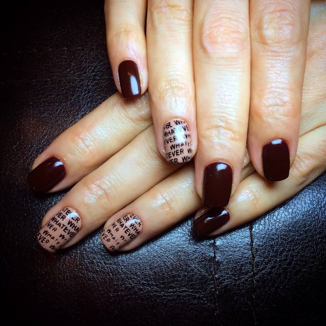 Дизайн ногтей с изображением букв и слов называют газетным.