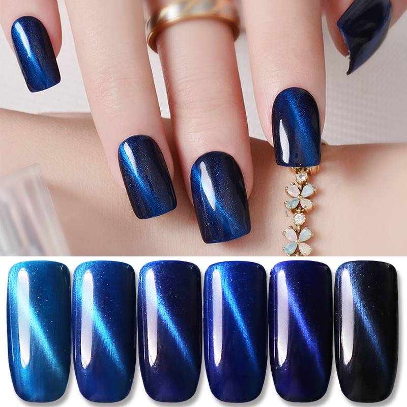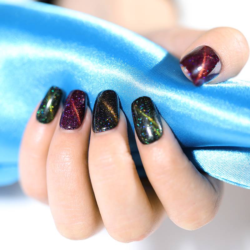 Эффект «кошачий глаз» можно получить от использования гель-лаков соответствующего вида, такое покрытие полностью готово к использованию. Красивые переливы получаются уже после первого слоя, а специальные магнитные гель-лаки могут создавать на ногтях удивительные эффекты.