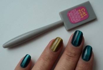 Не так давно модная маникюрная индустрия отметилась новым трендом – маникюром кошачий глаз. Производителями начал в широком формате поставляться магнитный лак для ногтей. За счет особой формулы и специального магнита в центральной части ногтя можно делать красивые линии, которые в сочетании друг с другом напоминают кошачий глаз.