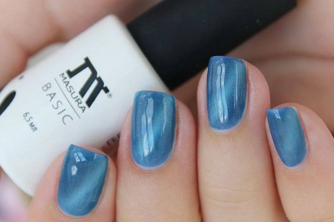 Синий кошачий глаз – маникюр, второй по популярности после серебряного. Тенденция сохранится еще как минимум год, так как синий цвет остается в списке трендов.